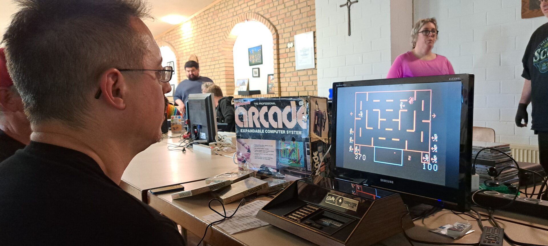 (Kleiner Bonus für Hardware-Experten: Wer auf dem Foto genau hinschaut, entdeckt rechts neben der Astrocade direkt den nächsten Retro-Schatz auf dem Tisch – ein Philips Videopac G7400, das dort ebenfalls spielbereit auf seinen Einsatz wartete.)